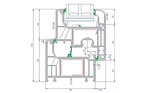 Sistemul Legend este proiectat cu 6 camere de izolare având o latime a profilului de 80 mm. Având în vedere criteriul de înalta performanta au fost proiectate astfel încât sa asigure proprietati de izolare termica, fonica si de rezistenta si etansare ale ferestrei. Profilele sunt produse în conformitate cu normele standardului TS5358 – EN12608.