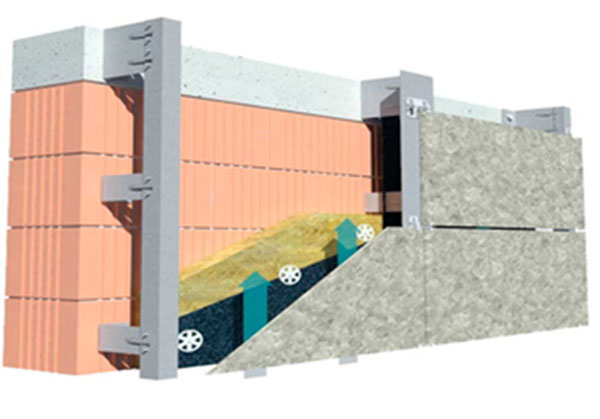 Fațadele ventilate sunt elemente constructive fixate la o anumita distanta fata de peretele clădirii prin intermediul unei structuri portante metalice (aluminiu sau otel), astfel încât materialul de placare sa fie bine fixat si rigidizat, pentru a face fata solicitărilor externe (vânt, ploaie, radiații solare, dilatații termice, solicitări mecanice, etc) si a crea, totodată, un aspect plăcut arhitectural, durabil si ușor de întreținut.